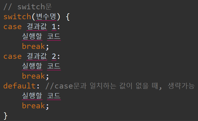 switch문은 또다른 조건문이다. 보통은 if문을 많이 쓰지만,