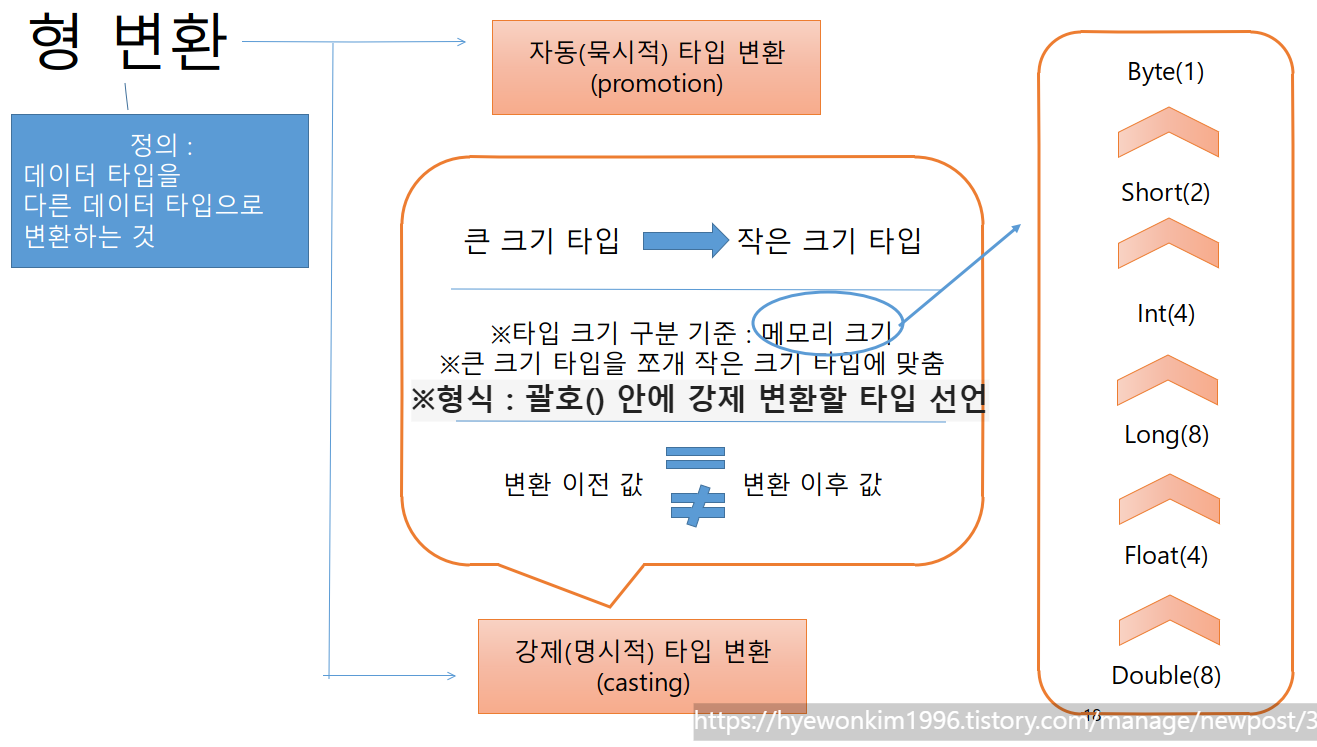 형 변환이란 데이터 타입을 다른 데이터 타입으로 변환하는 것이다.