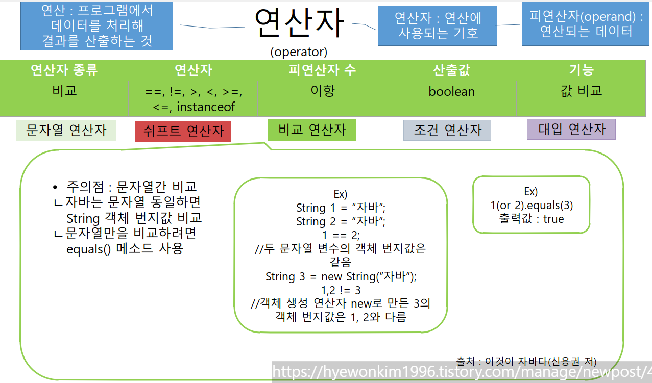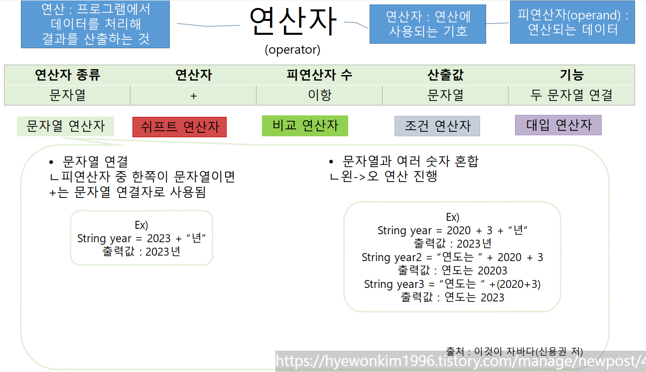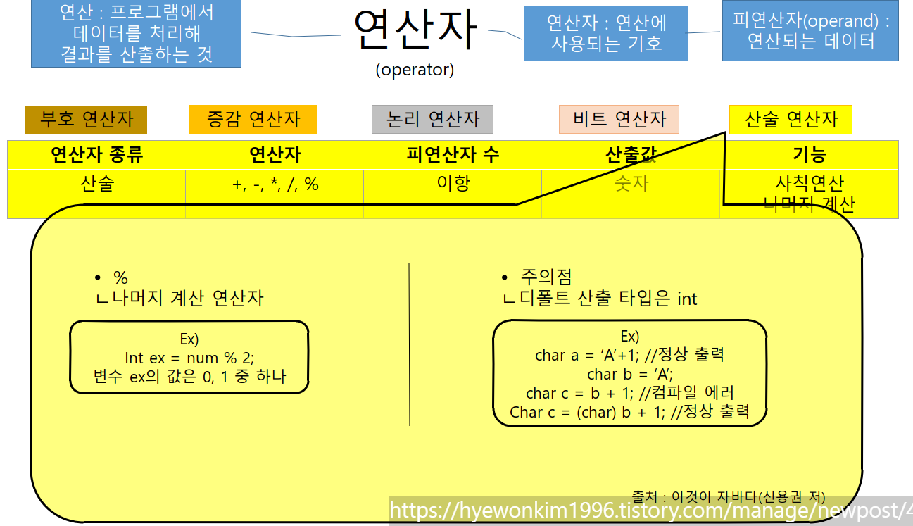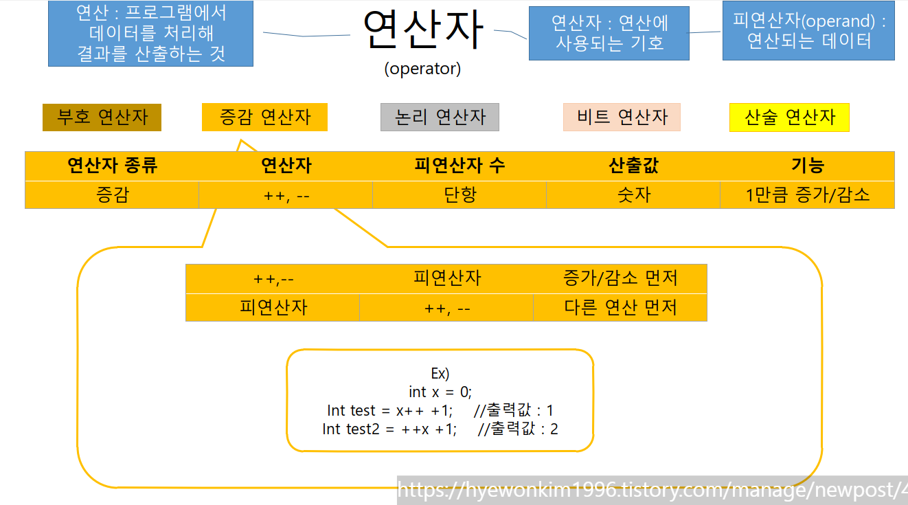 연산이란 프로그램에서 데이터를 처리해 결과를 산출하는 것이다.