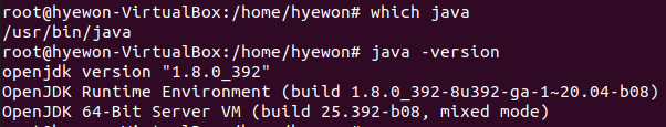 java -version : 설치된 자바 버전 확인
